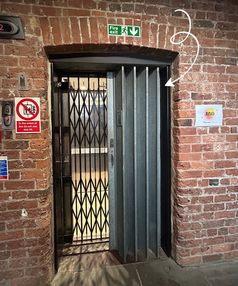 We have a small steep ramp at our entrance and a lift in our building, it is an old non-automatic elevator (both pictured below). It is possible to get a wheelchair up the ramp, we always meet customers at the front of the mill to assist with the lift. The smallest width door you'll have to go through is 71cm, we are looking into getting a wider door to accommodate wider heavy-duty wheelchair users.